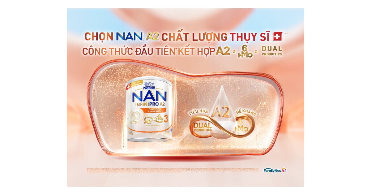 Hôm nay, Nestlé NAN chính thức giới thiệu NAN INFINIPRO A2 BƯỚC 3 cải tiến mới tại sự kiện “Nâng tầm tiêu chuẩn khoa học dinh dưỡng – Tối ưu lợi thế đầu đời cho con”. Sản phẩm với công thức đầu tiên(1) kết hợp đạm A2, 6HMO và Lợi khuẩn kép hỗ trợ tăng cường hiệu ứng cộng hưởng cho tiêu hóa và đề kháng - hai nền tảng quan trọng cho sự phát triển khỏe mạnh của trẻ em ở giai đoạn chuyển tiếp.